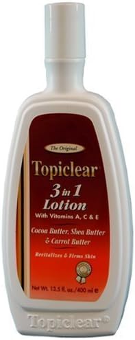 Experience the ultimate skincare solution with Topiclear Gold 3 in 1 Lotion in a convenient 13.5oz bottle. This versatile lotion offers a trifecta of benefits, providing your skin with nourishment, brightening properties, and deep moisturization all in one.