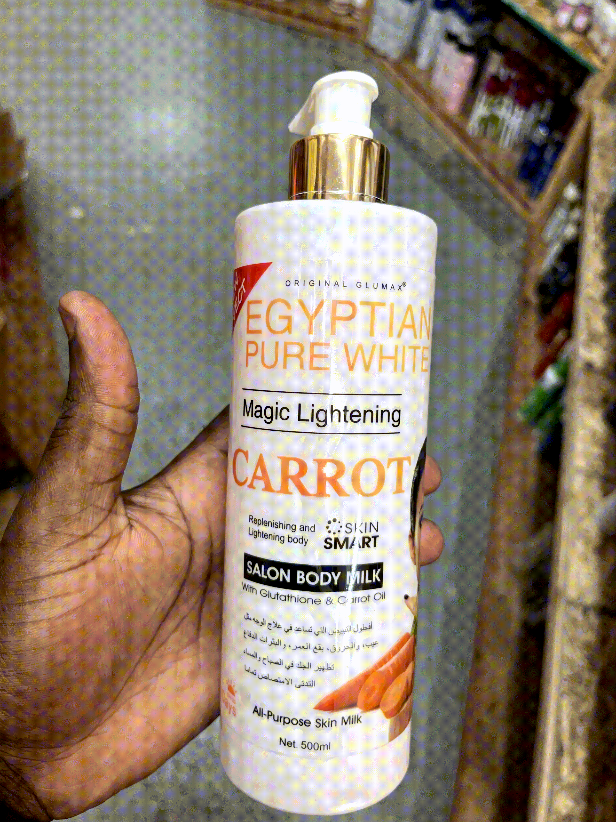 Uncover the secret to radiant, lighter skin with Egyptian Pure White Carrot Lightening Lotion. This unique formula, enriched with carrot extract, is designed to promote skin lightening and give you a more even-toned complexion.