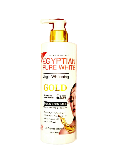 Experience the luxury of radiant and beautifully nourished skin with Egyptian Pure White Magic Whitening Gold Salon Body Milk. This opulent body milk, now available in a generous 500ml size, is meticulously crafted to promote skin whitening while providing deep hydration.