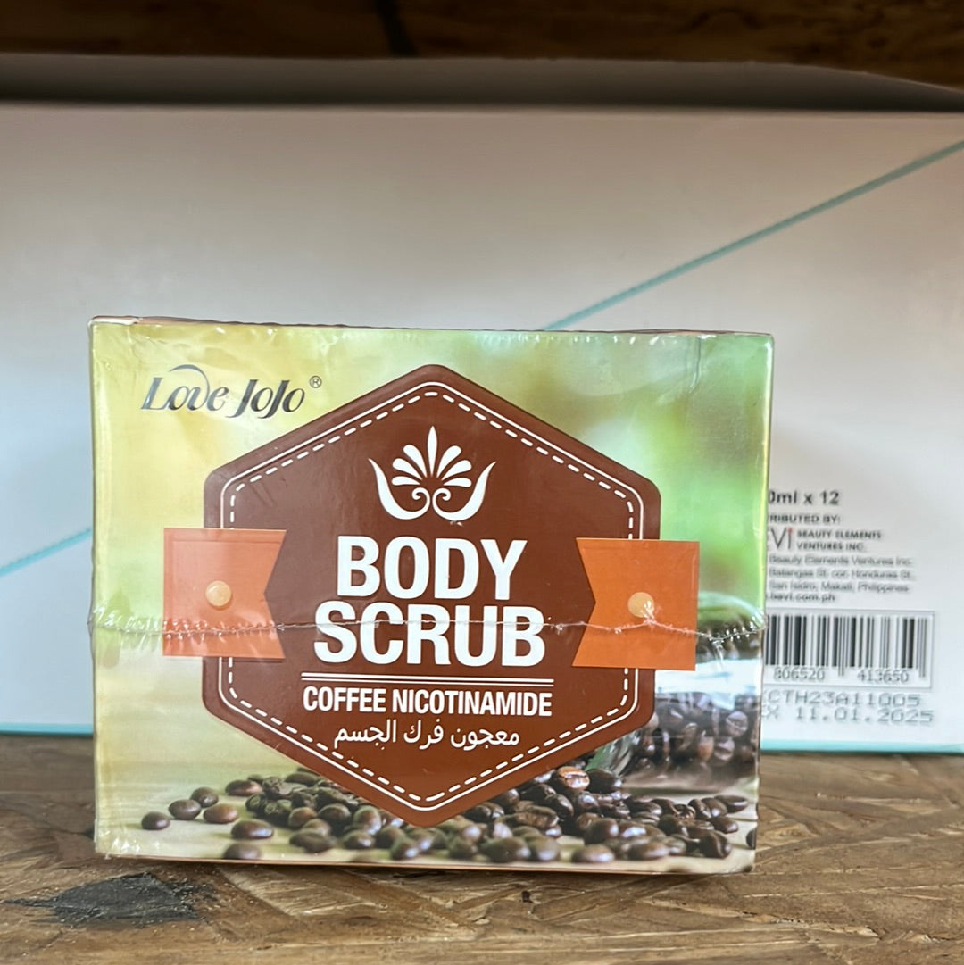 Indulge in the rejuvenating power of "Love JoJo Coffee Body Scrub," a luxurious exfoliating treatment designed to transform your skin, leaving it refreshed, revitalized, and irresistibly smooth.