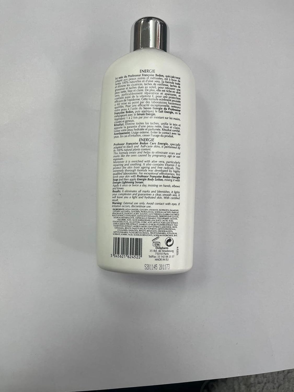 Energize your skin and elevate your skincare routine with Pr. Francoise Bedon Energie Lotion in a generous 500ml size. This specialized body lotion is meticulously crafted to provide a burst of energy to your skin while promoting skin lightening, leaving it feeling revitalized and beautifully moisturized.