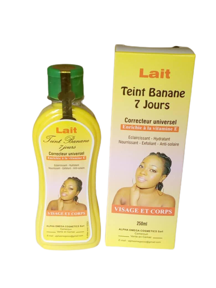 Discover the transformative power of Teint Banane 7 Jour Universal Corrective Milk, an original skincare innovation designed for both your face and body. This specialized corrective milk is meticulously formulated to provide a multitude of benefits, from brightening and correcting imperfections to promoting overall skin health, leaving your skin with a radiant and renewed appearance.